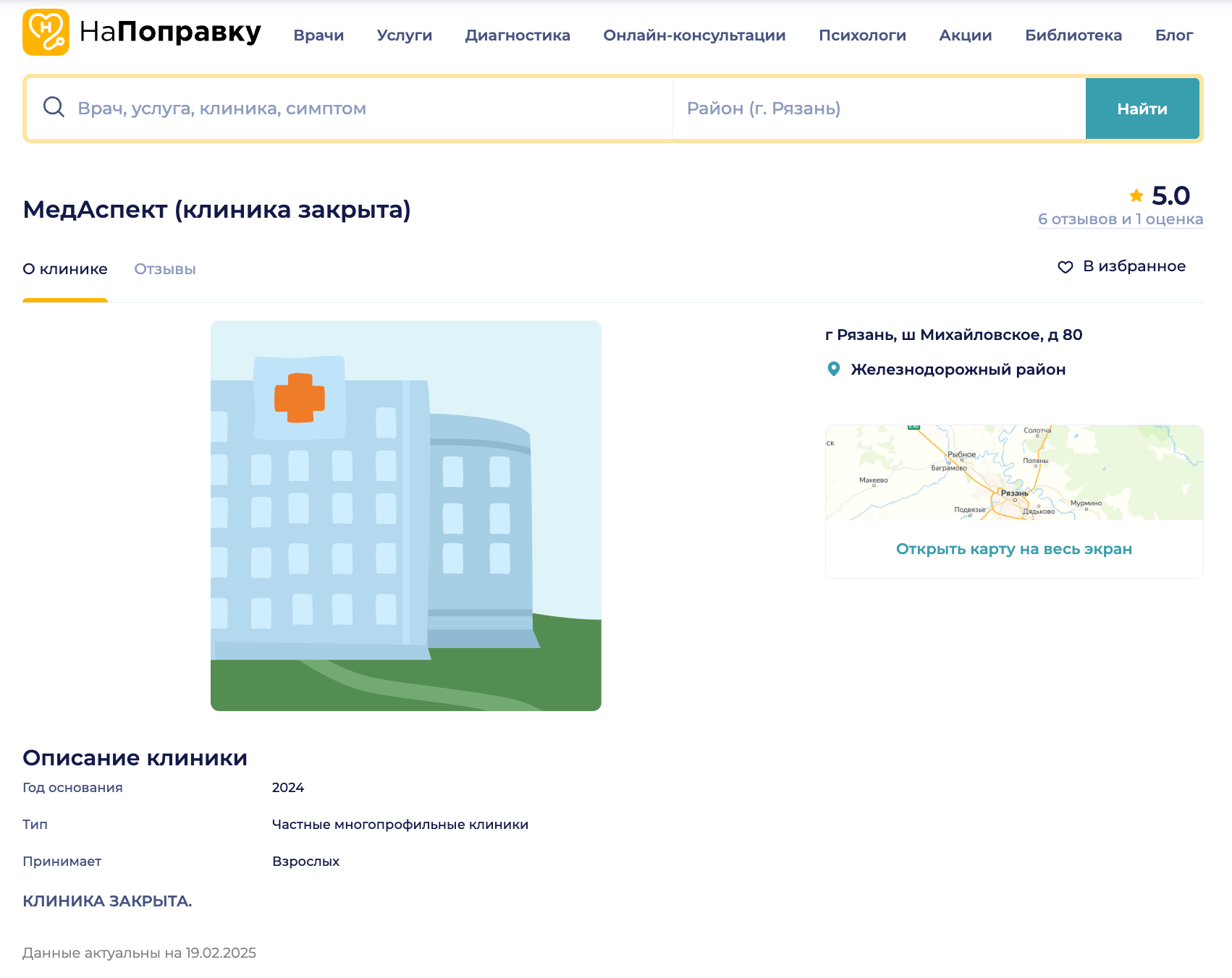 Мы сохраняем на сервисе информацию о закрытых клиниках