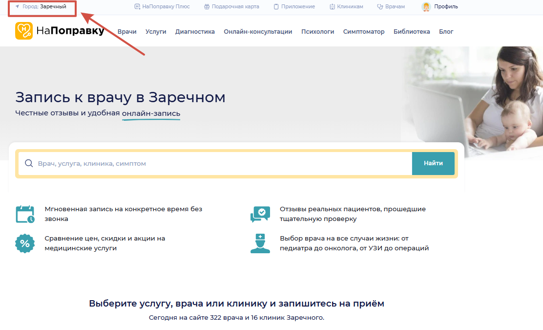 Если вы пользуйтесь сайтом НаПоправку, то вам надо просто выбрать необходимый город на главной странице сайта: