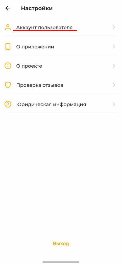 Далее перейдите в раздел «Аккаунт пользователя»: