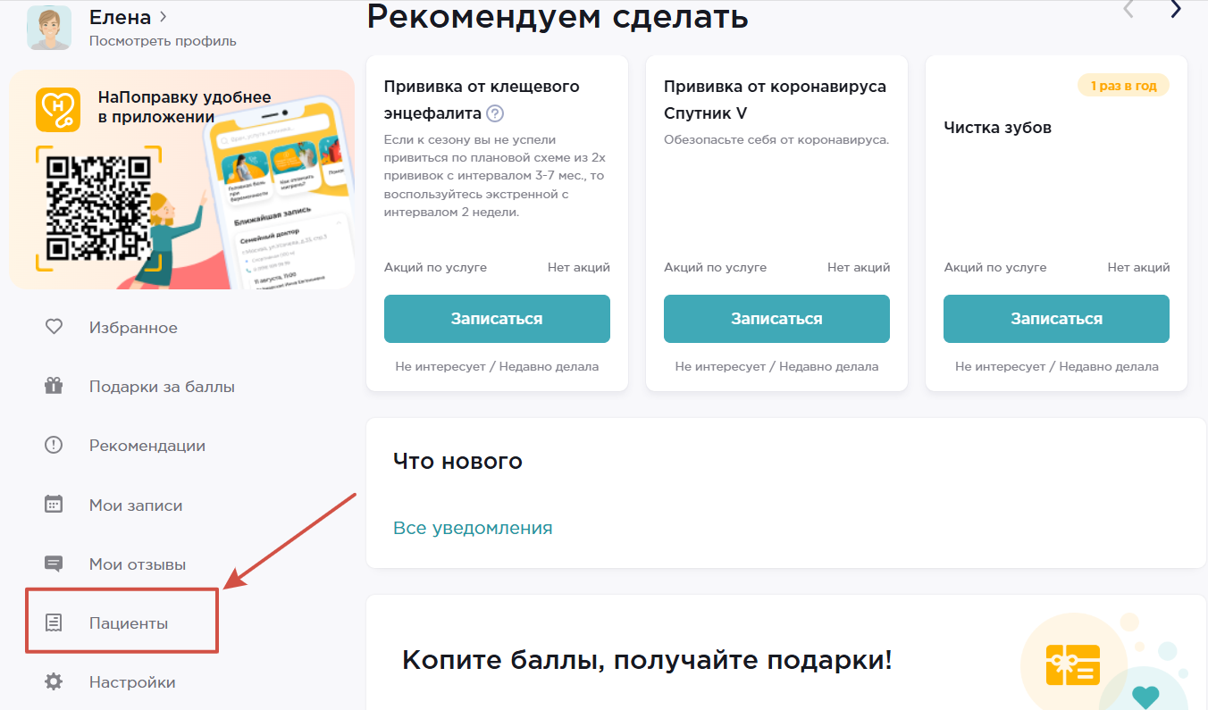 К сожалению, на веб-версии сайта нет возможности удалить пациента — это можно сделать только в приложении. Если у вас еще нет приложения, то установить его можно по ссылке https://nppv.ru/03ne.