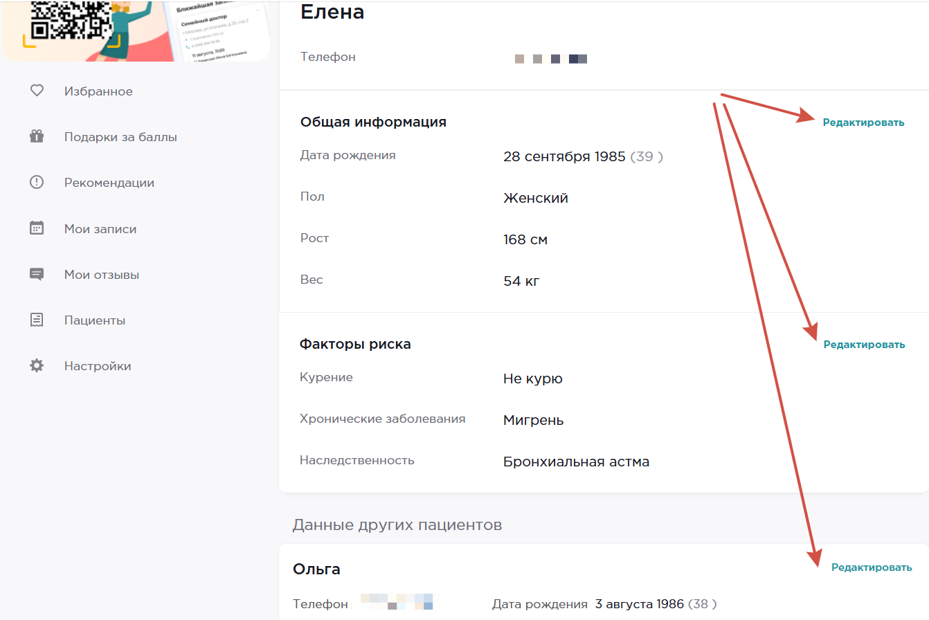 • Далее вам нужно выбрать необходимого пациента и нажать «Редактировать»: